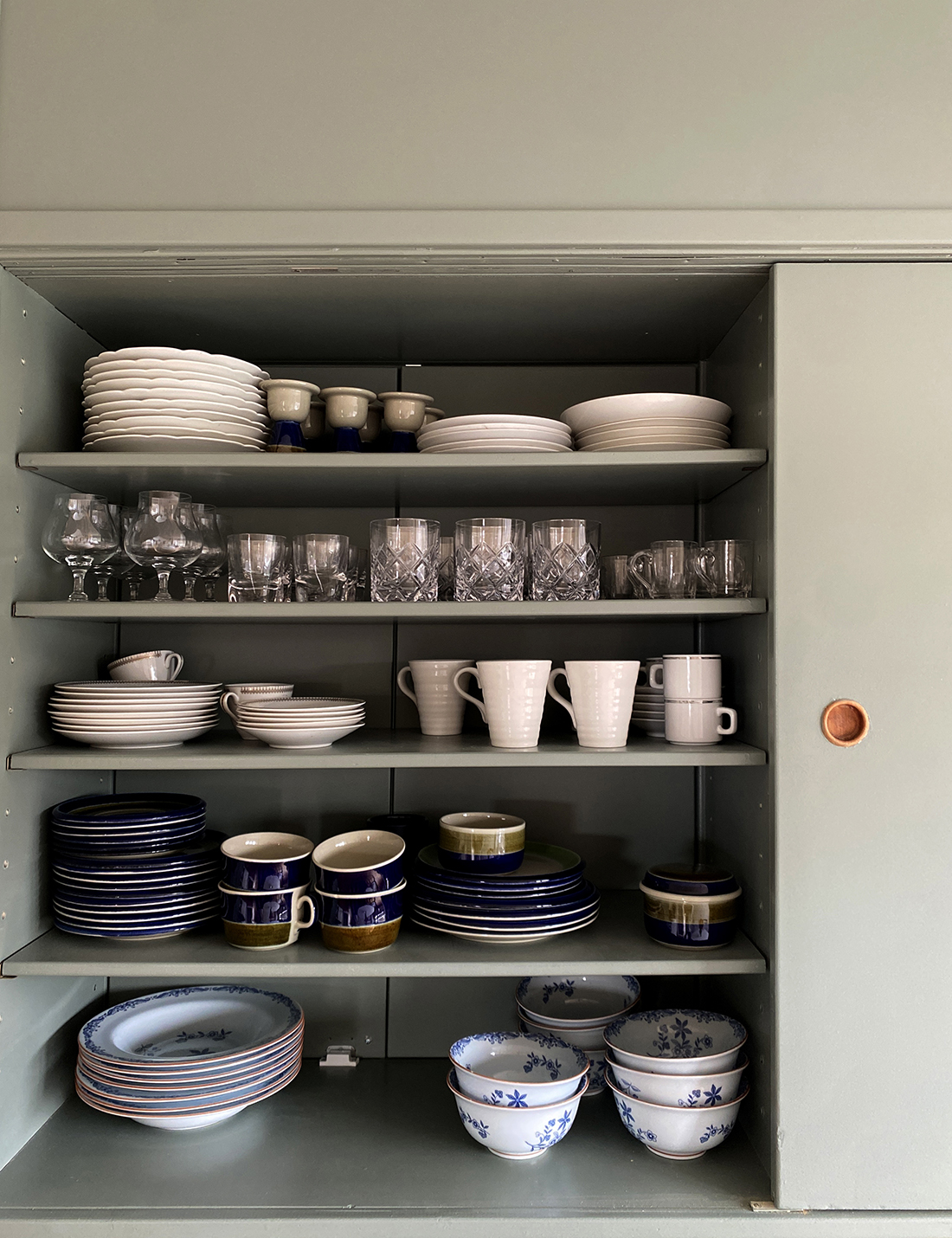Det igenbyggda skåpet mellan matsal och kök frilades och målades i NCS S-5005-G20Y