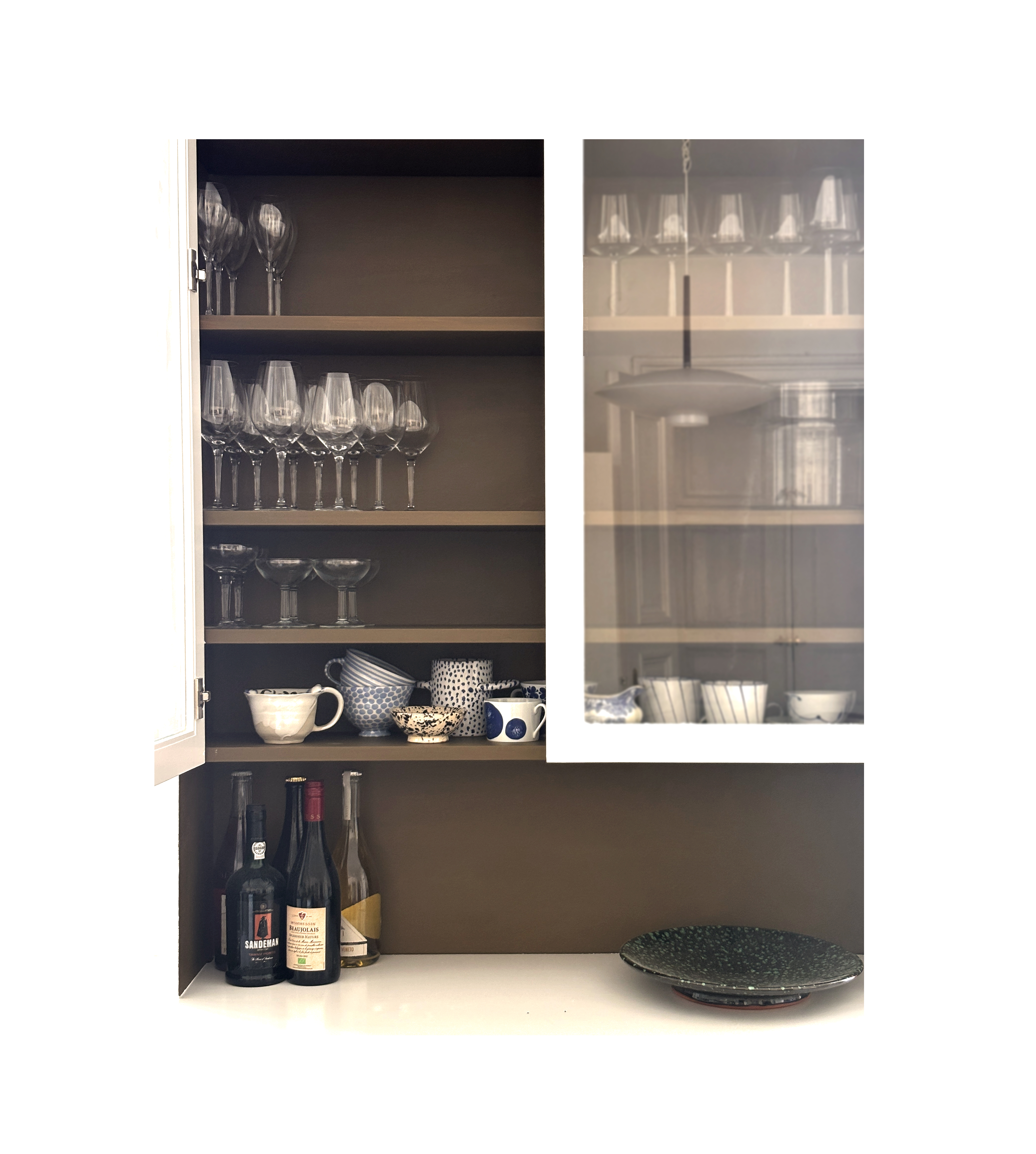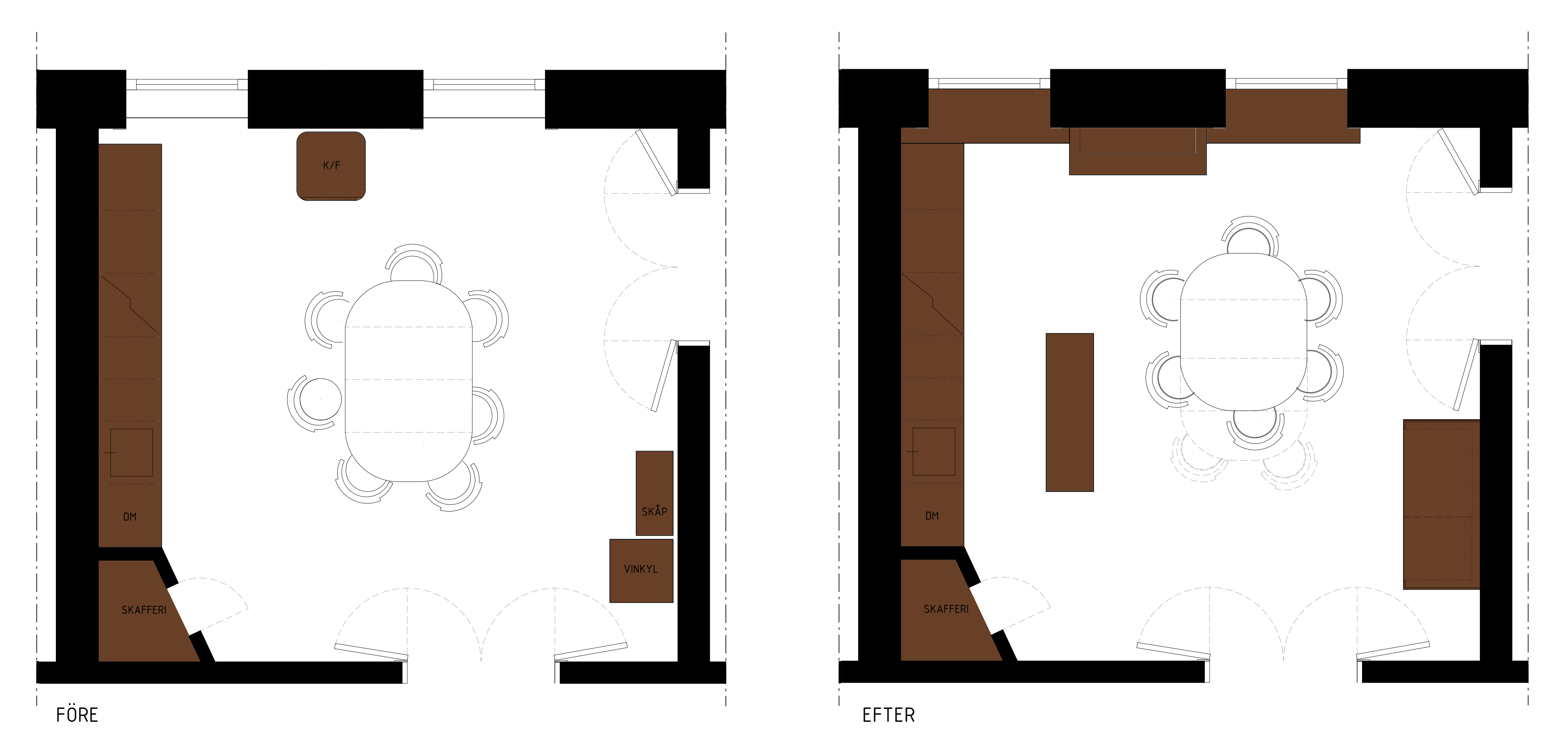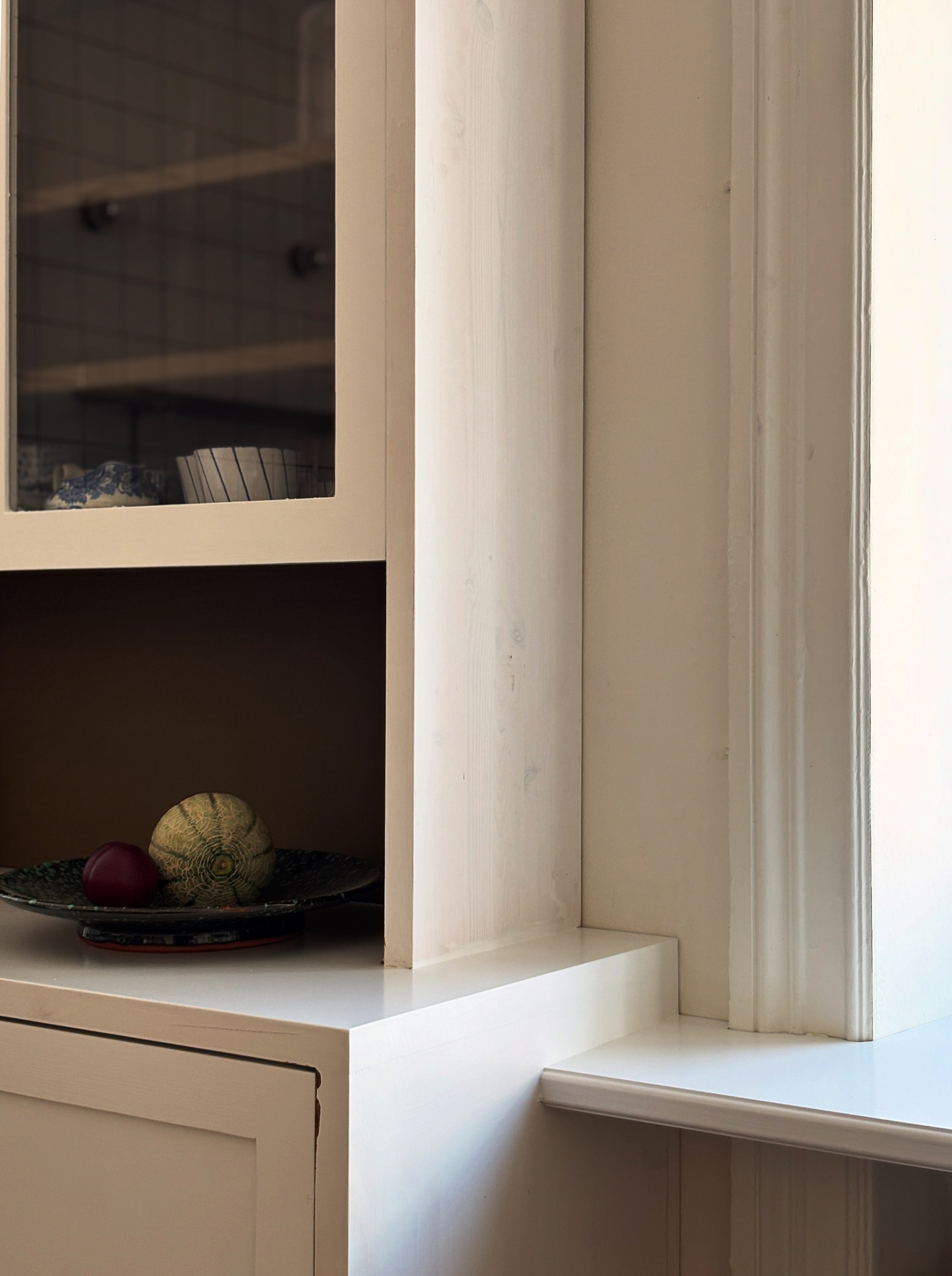 - Ett av sällskapsrummen i fil förvandlades för 7 år sedan till kök av de förra ägarna. Henrik och Maja saknade förvaring och avlastningsytor när de flyttade in, dessutom kändes det som att sömmarna mellan det nya köket och det gamla rummet inte var färdigsydda.
