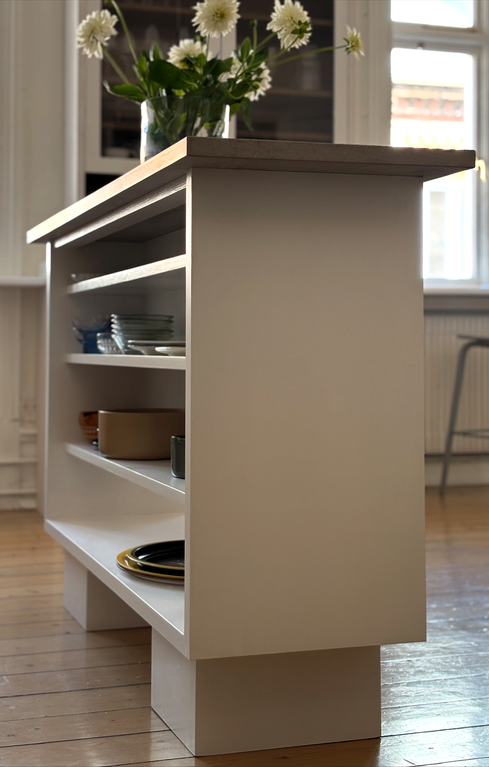 Med hjälp av nya djupa fönsterbänkar, en köksö, flytt av ljus- och platsslukande kylskåp samt tillägg av platsanpassade snickerier sydde vi ihop både öppna skarvar och deras förvaringsbehov.