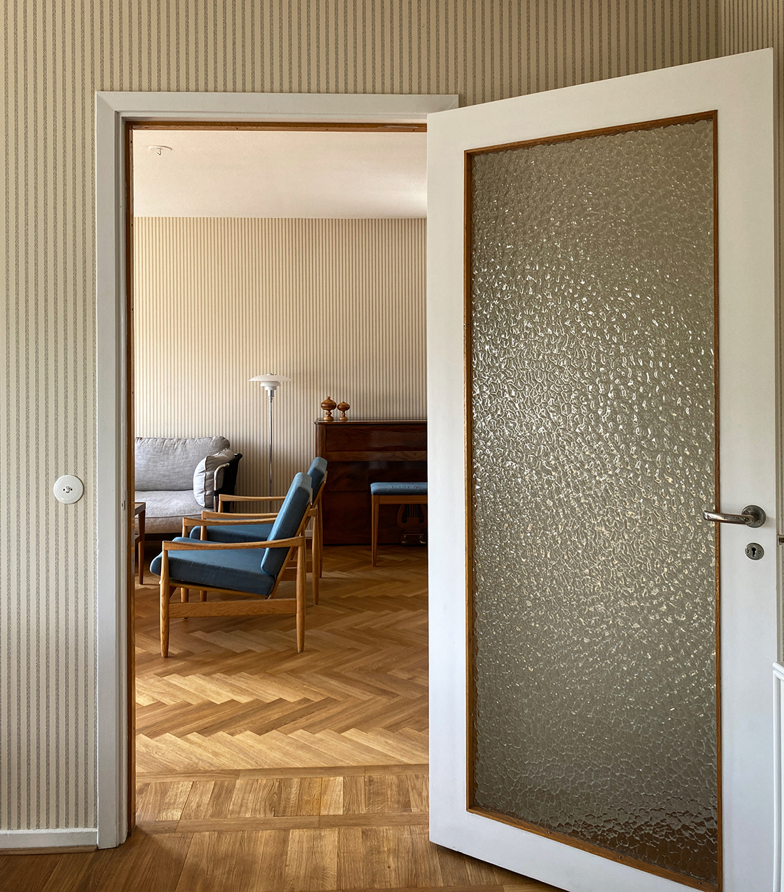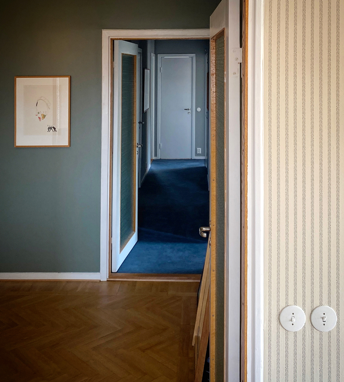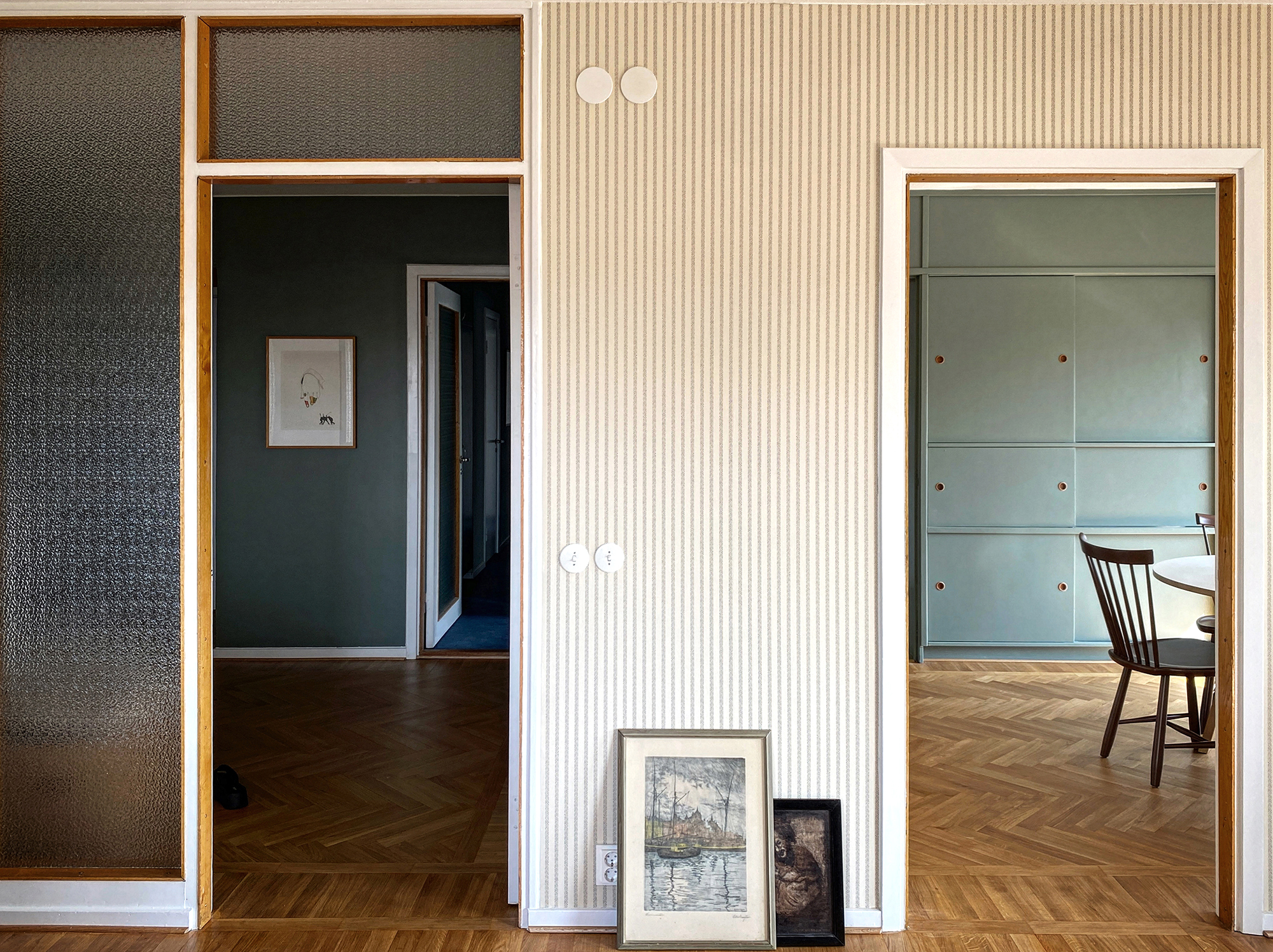 - Efter två decennier på olika adresser runt om i världen ville familjen Lindvall tillbaka till Göteborg. När en lägenhet högt upp i ett av husen på Föreningsgatan blev till salu, gjorde de slag i saken. De vita 12-våningshusen ritades av Nils Einar Eriksson, arkitekten bakom bl a Göteborgs konserthus, och stod inflyttningsklara i februari 1960. Nils Einar Erikssons omisskännliga signum av vackra kompositioner, högkvalitativa planlösningar och sinnliga såväl som praktiska detaljer genomsyrar husen. Lägenheten familjen kom över hade, till skillnad från många andra i samma hus, den ursprungliga planlösningen intakt och många originaldetaljer bevarade (om än ibland förvanskade och överbyggda). Familjen var mån om att återställa den ursprungliga karaktären av lägenheten och materialpaletten sättes varsamt ihop utifrån interiörreferenser från Nils Einar Erikssons samtida miljöer i kombination med familjens egna bohag. Förutom färg och materialpalett önskade de även hjälp att programmera och möblera upp ytorna för att hitta en önskad form för både volymer och beteende att ta plats.