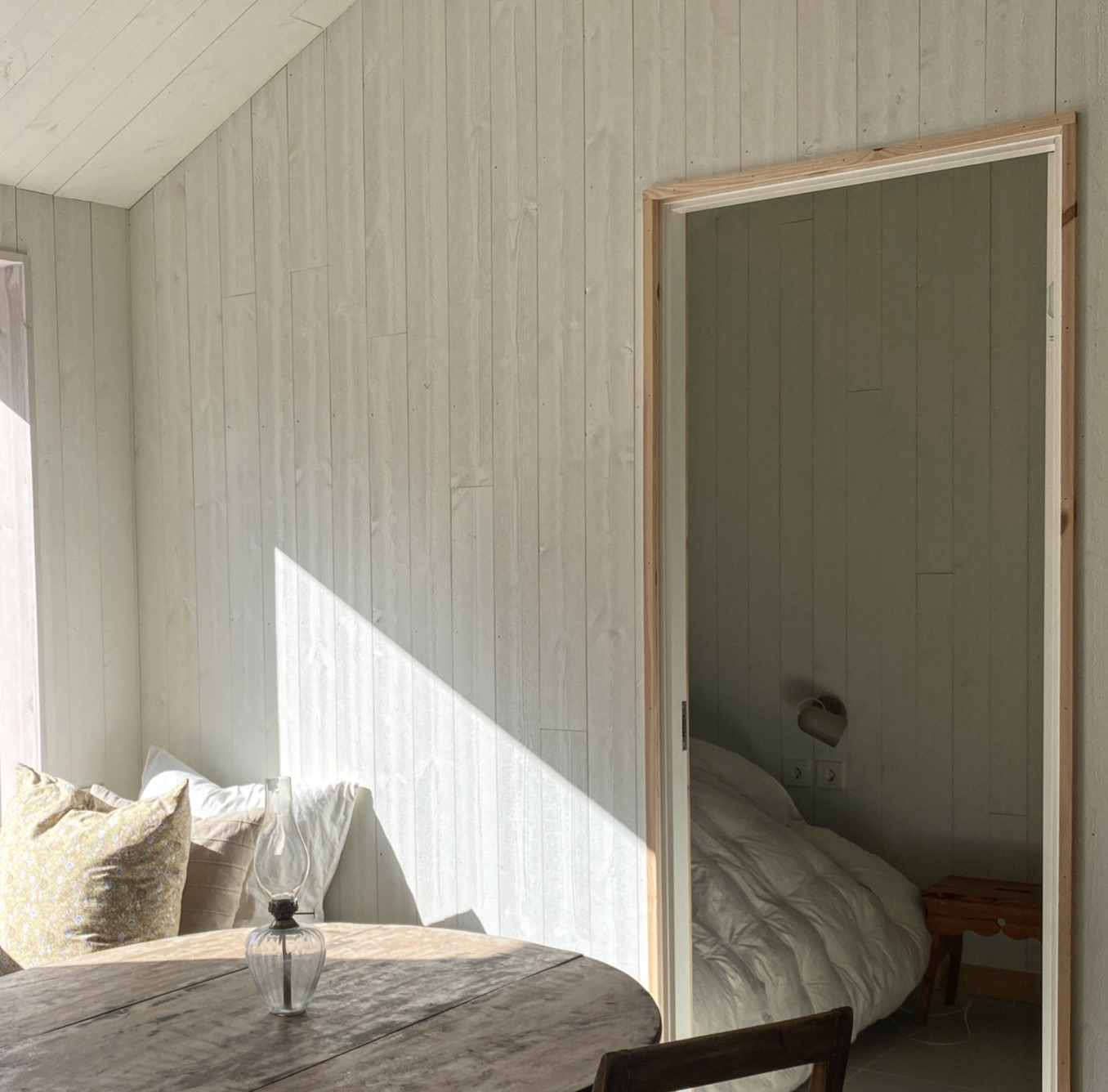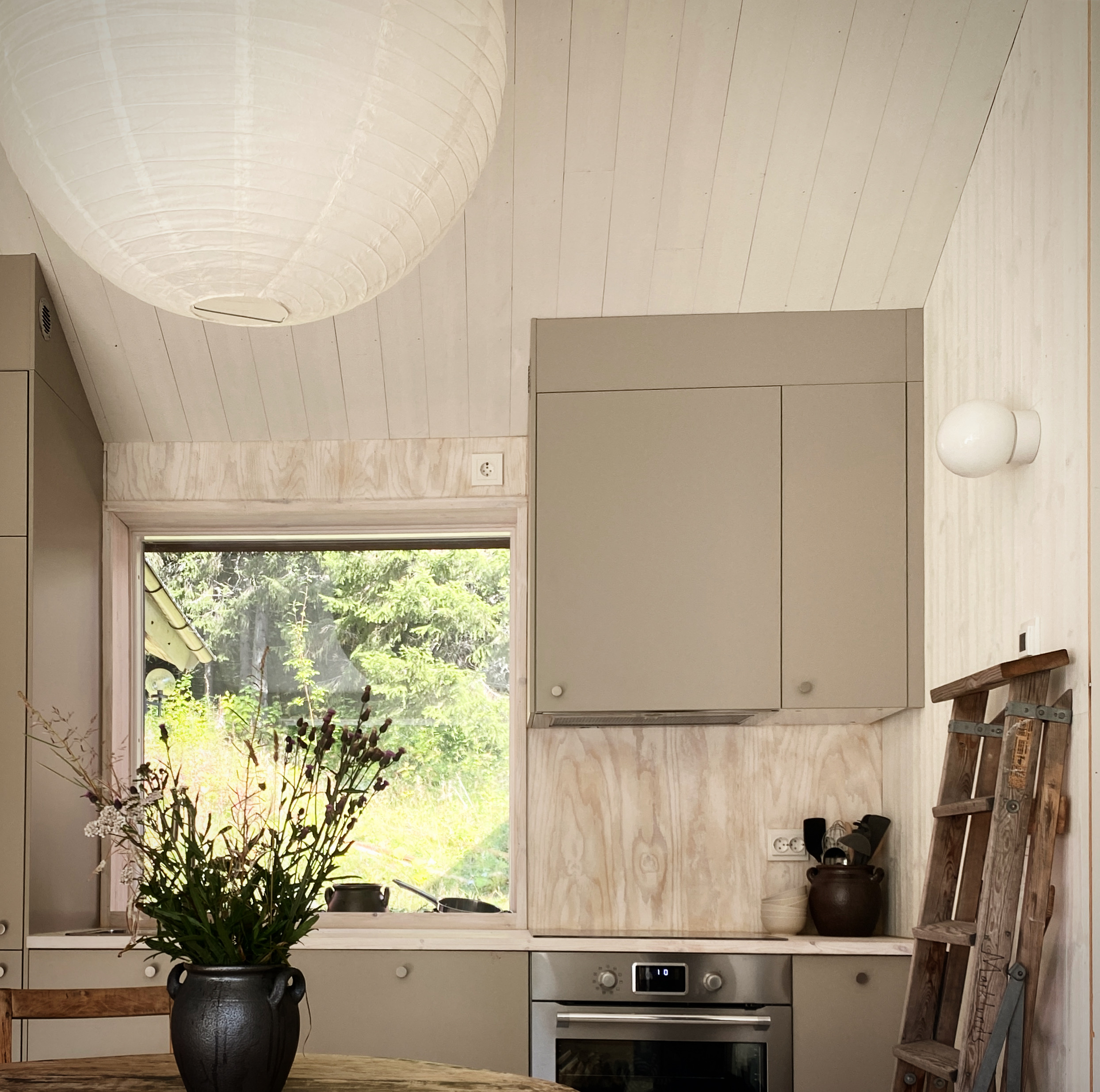 - Ursprungshuset byggdes med sina 45 kvadrat 1945 och flyttades samt byggdes ut med en tidstypisk veranda på 1990-talet.